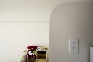 「この物件に出会うまで、あまりピンとくる物件がなく購入をやめようと思ったこともありました。この物件は、外観を見たときにバルコニーのデザインが気に入ったのが決め手のひとつです。一緒に物件探しをしてくださった営業の方の印象が良かったのでマイリノでリノベーションすることを決めました。」(U様) - 2可愛い雰囲気に趣味を詰め込んだリノベーション「設計士さんには、小上がりが欲しいこと、大きな本棚が欲しいこと、寝室は空間を分けたいことを主な希望としてお伝えしました。ご提案いただいた間取りがイメージ通りで、内装も希望通りの可愛い雰囲気にできたと思います。」(U様)