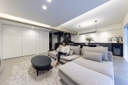 「二社とも現地調査に来てくださって、リノベーションで実現できること、できないことを確認してもらいました。仮プランを作っていただいた中で、マイリノは具体的な提案が豊富でした。他社で『できない』と言われたことにも解決策を提示してくれたので、マイリノにお願いすることを決めました。」(Nさま) - 2スタイリッシュモダンな広々LDKを実現