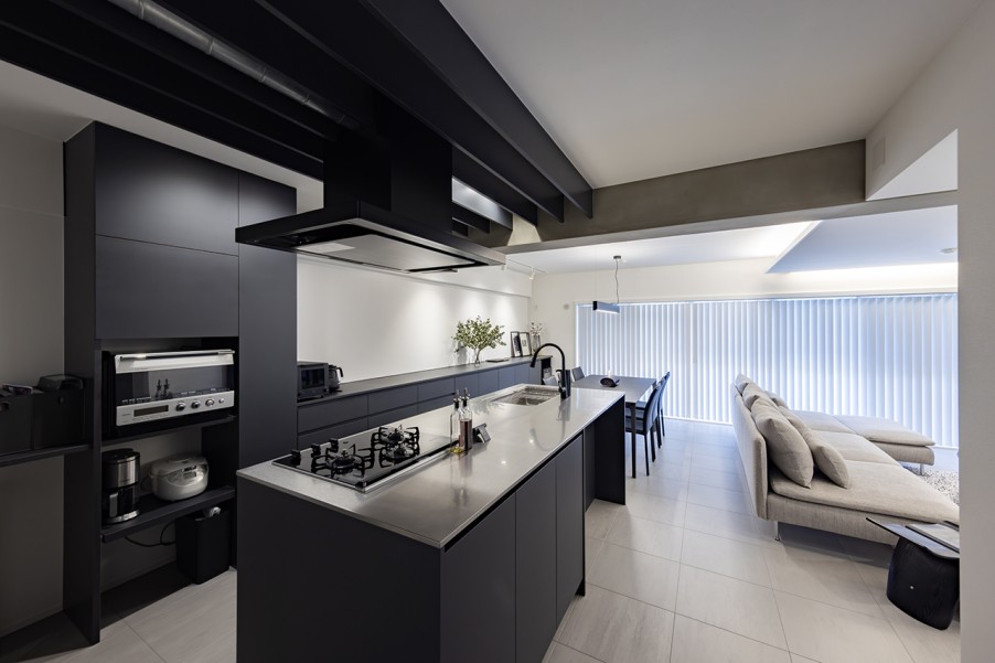 また、Nさまのご要望に合わせて、あえて自然素材を使わずにクールなテイストにしたことで、スタイリッシュで洗練された空間に仕上がりました。植物を取り入れたい際には、窓からの借景や観葉植物で、生きた自然を取り入れていただければと思います。
