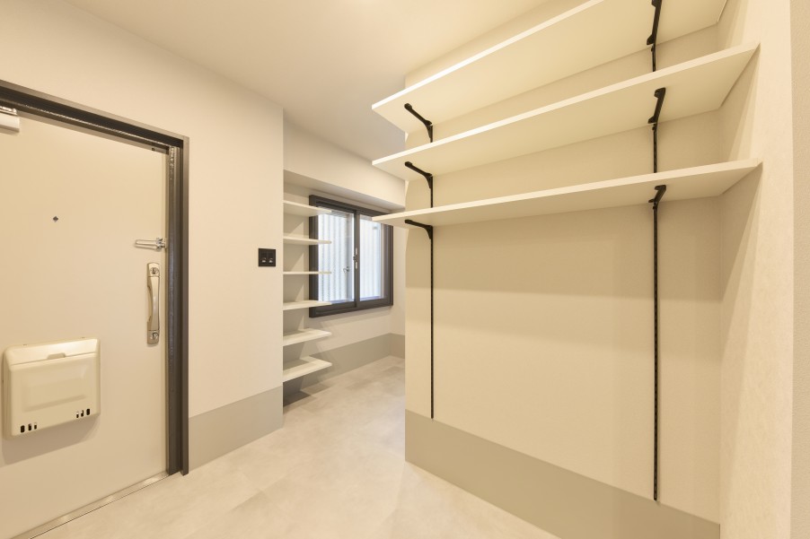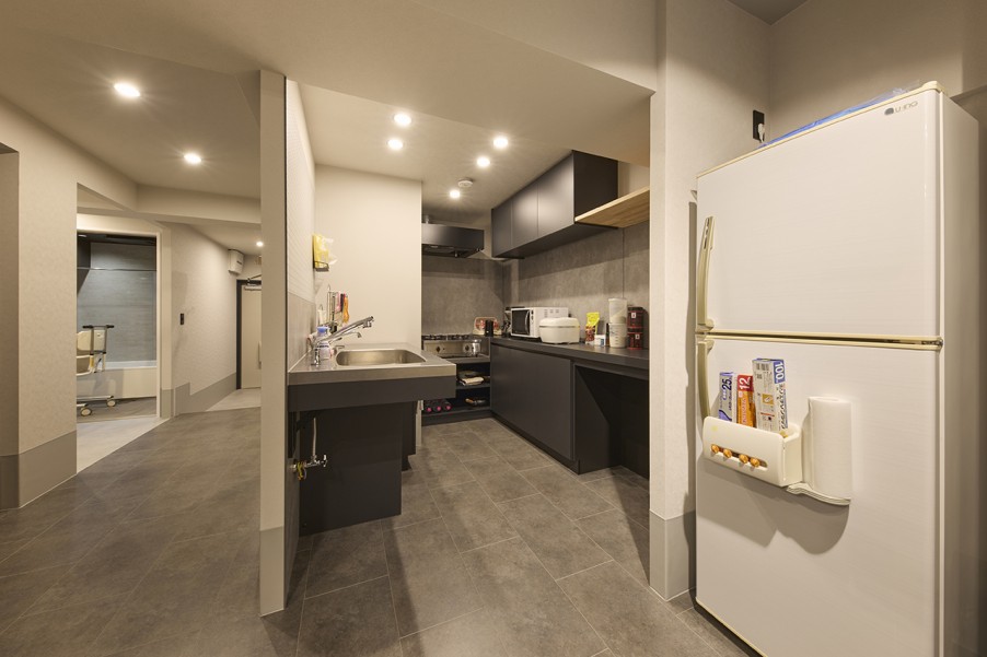 物件探しでの必須条件は、勤務地から近く、平坦な道でアクセスできること。加えて、エントランスや共用部がバリアフリーであること、扉やオートロックの仕様に至るまで細かい条件をクリアする必要がありました。そのため内見できる物件は限られ、図面の段階でも条件に合わないものは次々と除外せざるを得ませんでした。こうして一年以上をかけ、ようやく出会ったのが現在のお住まい。そこからリノベーションがスタートしました。 - 2介護者を選ばない住居を目指してTさまが大切にしたのは、「生活の大変さを少しでも和らげ、どんなヘルパーが来ても介護しやすい空間にすること」でした。