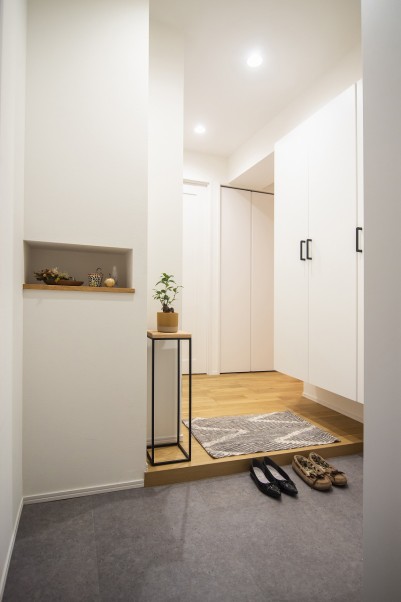 さらに、玄関を入って正面の壁には、鍵の置き場として使えるニッチを造作しています。
