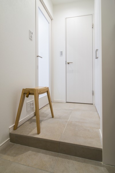 キッチン、リビング、洋室がゆるやかにつながった付かず離れずの関係性がいいですね。 - 2設計の一工夫廊下もタイルで仕上げることで玄関スペースを広く感じられるようにしました。