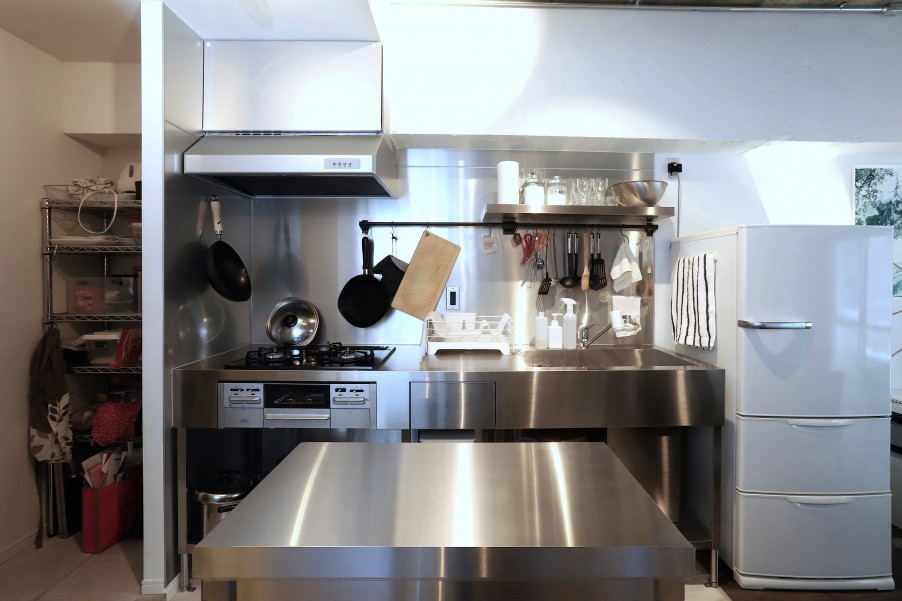 - 3ステンレスキッチンはお部屋の顔ステンレスキッチンにこだわり、サンワカンパニーの商品を奥様が一目惚れ。とても存在感のあるお気に入りのキッチンです。
