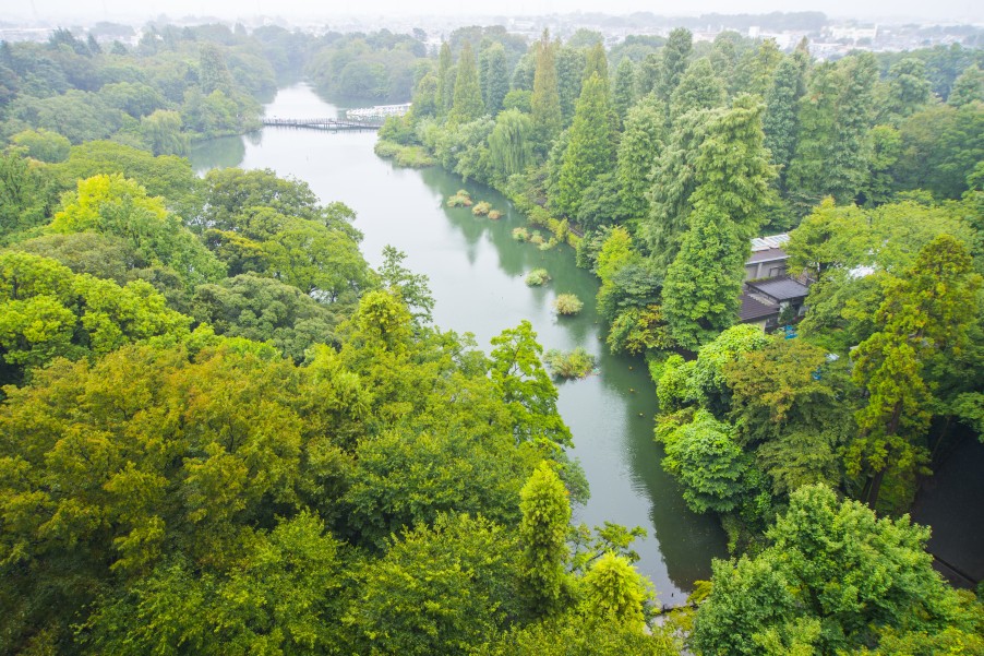 ご主人が一目ぼれしたという窓からの井の頭恩賜公園の風景は、まさに圧巻。取材当日はあいにくの雨模様だったのですが、それでも緑が濃く美しく、池の周りを彩っていました。