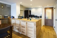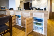- 造作キッチンカウンター収納、カップボード新規設置
