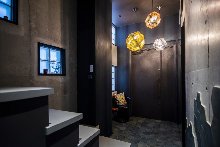 「1階の玄関スペースは、土足でもスリッパでも歩けるミニラウンジのような雰囲気を目指しました。日本人としては、土足で屋内を歩き回るのは抵抗があるかもしれません。私自身も上がり框をなくすという発想はなく、玄関を入ったら靴を脱いでスリッパを履くものだという先入観がありました。でも、上がり框を取り払ったことで可能性が広がり、今のような開放感のある雰囲気にできたと思っています。ロボット掃除機で1日1回掃除をすることで、汚れは気になりません。玄関から光を辿って奥へ進むと、靴やバッグ、コートを収納できるスペースに繋がります。お客様が来たときは、荷物をすべてその収納スペースに入れてもらい、手ぶらで3階のリビングまで来られるように設計しています。」(Y様)