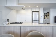「物件購入後に希望通りのリノベーションができなかったら嫌だなと思って問い合わせたところ、担当の設計士が一緒に内見に同行してくれました。具体的なテイストはまだ決まっていませんでしたが、『何ができて、何ができないのか』を見てくださって、『この壁は壊せますか?』『キッチンはこういう形にできますか?』といった希望についても確認してくれました。『お願いするかどうかはご自由に』というスタンスも相談しやすく、他社とも比較した結果、安心感やスピード感が決め手となり、マイリノにお願いすることにしました。」(Kさま) - 2シンプルで落ち着いた空間に