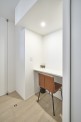 もともと和室だったスペースを納戸に変更。親御さんやご友人が泊まりに来たときのゲストルームとして使えるようにセミダブルベッドが置ける広さに設計しました。一角にはデスクも備え付け、在宅勤務でどちらかがWebミーティングを行う際のスペースとしても使えるようにしています。
