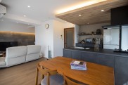 こうして、木のぬくもりに包まれた落ち着きのある住まいが完成しました。大きな窓から降り注ぐ陽光と、開放的で心癒される眺望に包まれながら、これからもゆったりとした素敵な時間が流れていくことでしょう。