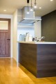 暗く閉鎖的だったキッチンをオープンなペニンシュラ型とすることで開放感とつながりを持たせました。キッチンを通路と平行して設置することで廊下兼作業スペースとしても利用でき、空間の有効活用とともに両側から作業しやすくしました。
