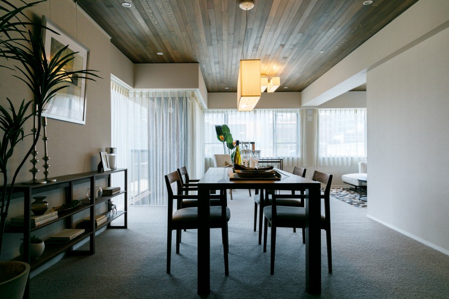 南青山に佇むリゾートのような住まいです。表参道から徒歩5分の都会にいながら、くつろぎのリゾートにいるようなゆったりとした空間を考えました。