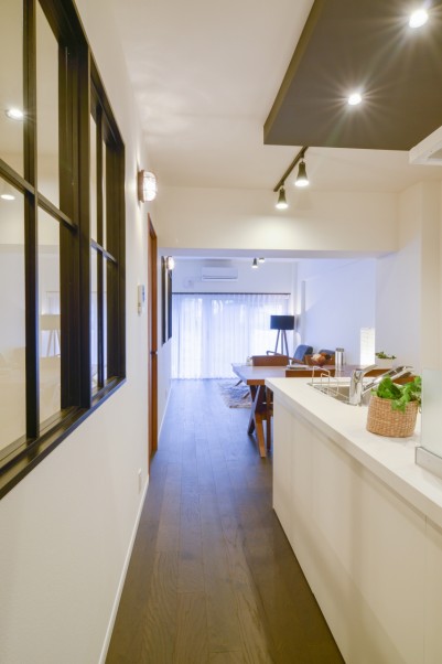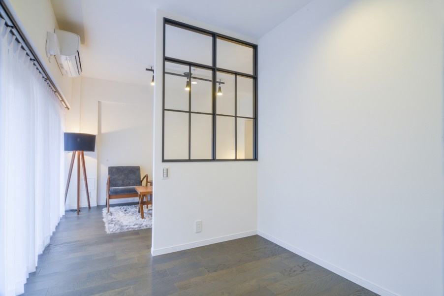 リノベーションの仕上がりも窓枠をシンプルにしあげて、華奢にみえるようなデザインにしています。