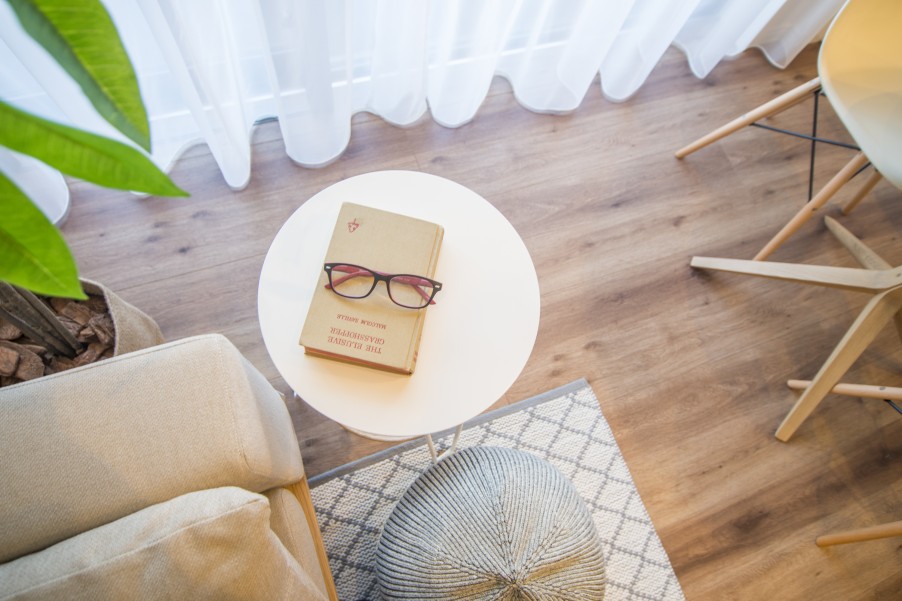 - ヘリンボーンの床にこだわった、ゴールドがアクセントの家