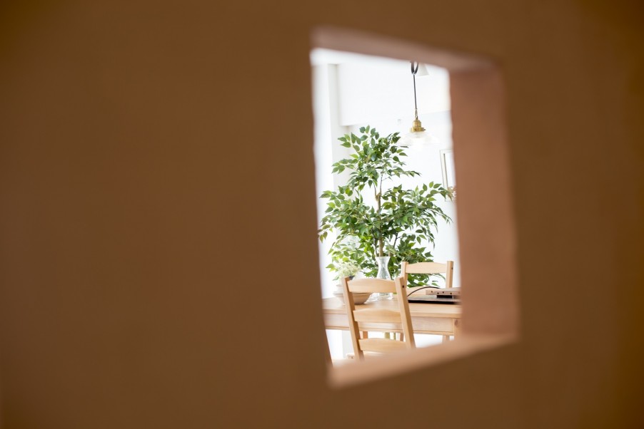南向きで日の光がたっぷり差し込むお部屋だったため、リビング横のフリースペースには小窓を設置。