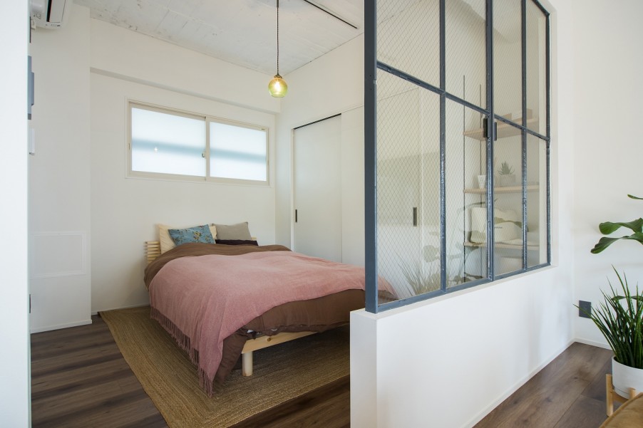 それと、寝室の室内窓のところですが、実はリノベ前についていた窓枠を再利用しています。