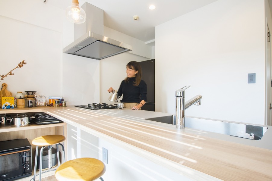 以前は20㎡前後の賃貸ワンルームマンションに住んでいたというM様。当時の部屋はキッチンのコンロが一口しかなく、趣味であるベーグル作りに不便とストレスを感じていたこともあり、引っ越しを決めたそうです。