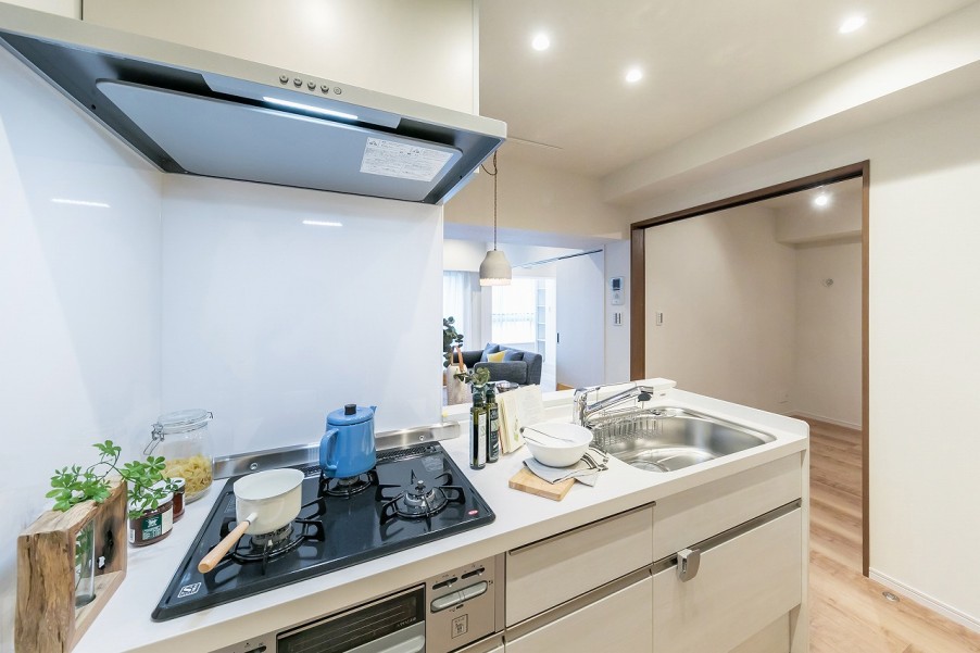 「キッチンの対面式になっているところが気に入っています。永遠に続く希望になってしまうと思いますが、もっと広ければもっと助かるな、というのはあります」(奥様)