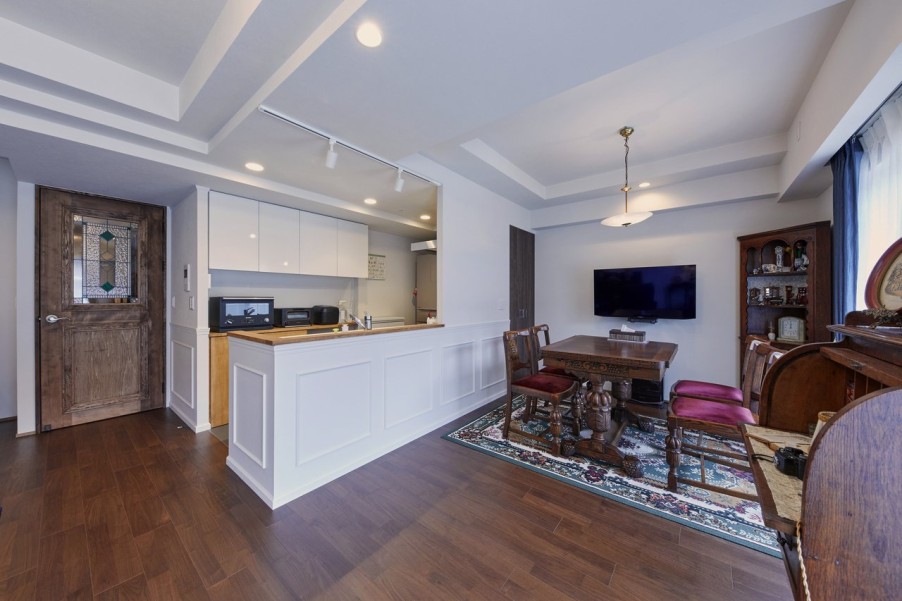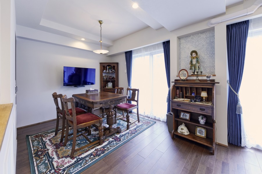 家具と内装のデザインがぴったり合い、奥様お手製のお人形ともマッチする空間となりました。