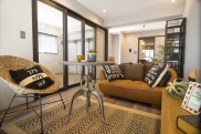 - 1明るいリビングダイニングキッチン隣接する洋室はガラス扉にすることで、リビングダイニングキッチンは2方向から