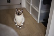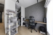 主寝室(約5.1帖)にも日用品を収納できるウォークインクローゼットを設け、そこからつながる洋室2(約2.3帖)には漫画やチェアを置いて、おこもりスペースに。また、玄関にはキャリーケースやその他の荷物を収納できる土間スペースを設けました。 - 3愛猫を迎え入れて暮らしがさらに豊かに