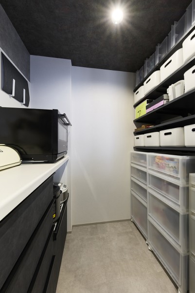 キッチンは料理好きのご主人がこだわったポイントです。壁付けキッチンをリビングに向けたオープンキッチンに変更し、リビングから見えない位置にパントリーとして使える収納棚を新設。使いやすいハイカウンター収納も取り入れました。「前の家のキッチンは狭くて使いづらかったので、かなり快適になって料理の頻度が増えました」とご主人。