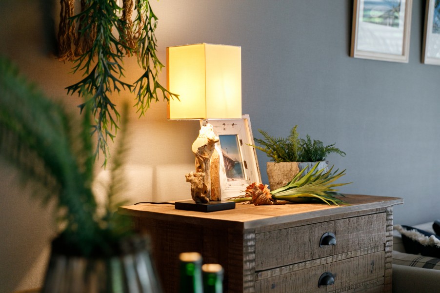 リビングの壁には絵やグリーンをぶら下げて楽しむことができ、ダウンライトがあるので夜の雰囲気もよくなり夕食後の団欒を楽しめるようにしています。