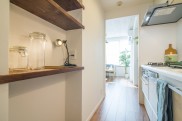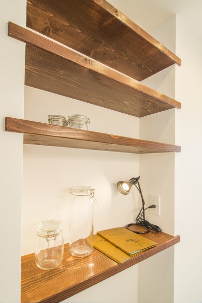 - 1素朴な風合いの棚板や建具物を大切に長く使う海外のインテリアを参考に、素朴な風合いの棚板や建具を取り入れました。