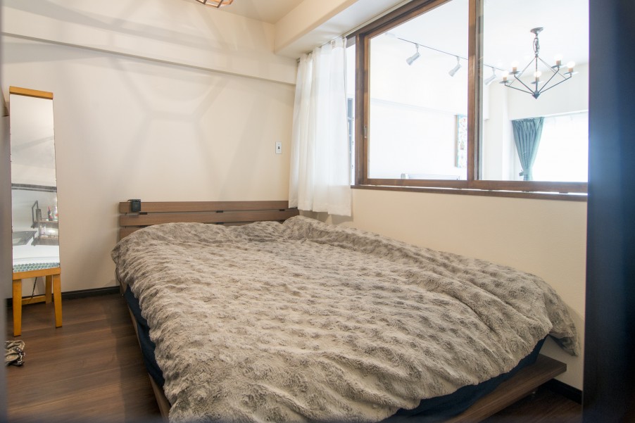 「窓のそばをインナーテラス風にしたかったので、洗面所とお風呂場とトイレを同じモルタルシートを貼ってもらって、雰囲気を揃えました。窓が大きくて、陽当たりがいいので、本当に暖かくて、冬でも暖房なしでも大丈夫な日もあるくらいです。さえぎるものがなくて、夜になると他の建物の灯りが幻想的で、雰囲気ありますよ。さらに、購入前にチェックしていなかったんですけど、富士山が見えるんです。これはポイント高いですよね」(夫)買ってから気づいた思いがけない眺望の素晴らしさに、家への愛着がさらに増したと話してくれました。ご夫婦2人の希望をたっぷり取り入れたお部屋。いつもつながりを感じさせるレイアウトで、仲良しご夫婦の距離はさらに近くなったようです。