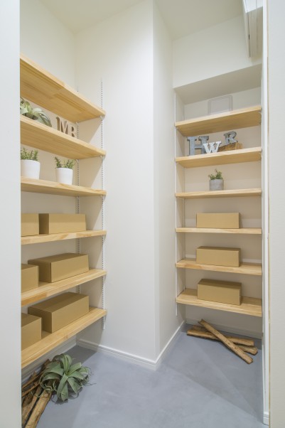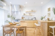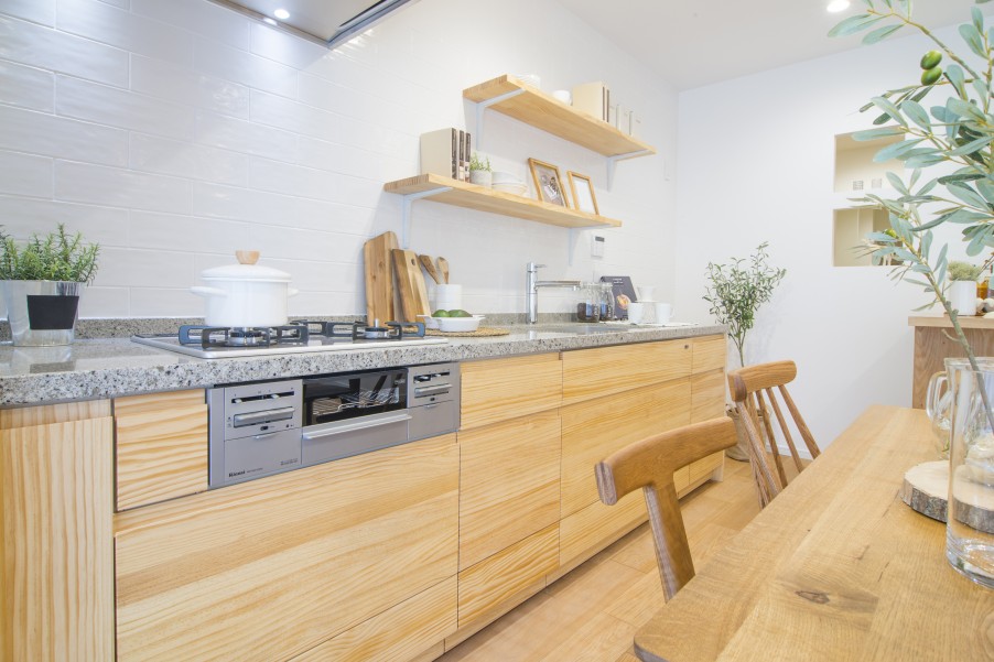 そのため玄関とウォークインクローゼット、ウォークインクローゼットとマルチルームの間にはあえてドアを設けずに一部間口を開け、通気性を確保し、無垢材が呼吸をできるようにしました。 - 2見せるキッチンキッチンは壁付にしたため、リビングにいれば自然に目に入ってしまいます。