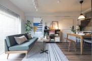 新宿駅から1駅離れているので混雑も回避できます。 - 2自然光だけで美しい部屋南向きでしっかり陽がはいりお部屋自体明るいので、リノベーションで選んだ素材は比較的落ち着いた色味の大人な印象にしています。