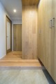 キッチン〜リビング、そして可変式洋室までゆとりのある広さを確保できるように玄関からトイレ、洗面室へのアプローチを最小スペースで考えました。リビングのエアコンの配管スペースは目立ちにくいように設計し、部屋の中からは配管がほとんど気にならないルートにしお部屋をすっきり見せています。また、板貼りや間接照明の柔らかい光で、玄関の印象も温もりが感じられるようにしています。友人やお孫さん、誰かが遊びに来てくれるようなお家になれば嬉しいです。