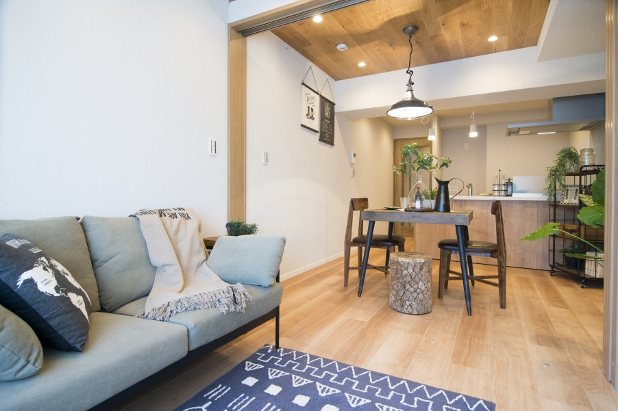 - 1立地とリノベで叶える、まるで戸建てのような暮らし場所は西日暮里〜谷中、裏手には富士見坂。部屋は4階ですが、窓からのロケーションはまるで2階にすんでいるかのよう。採光が優しくとれるので淡い色合いのクロスや板材を使用し、ナチュラルな雰囲気にリノベーションを仕上げました。