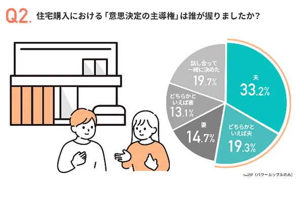 パートナーについて初めて知ったこと、男性は「お金に対する不安や備えの意識の強さ/弱さ」、女性は「相手の貯金額」Q.2住宅購入における「意思決定の主導権」は誰が握りましたか?
