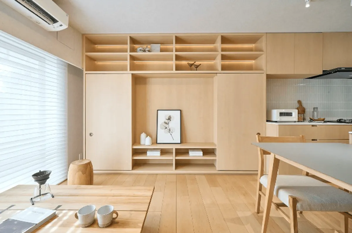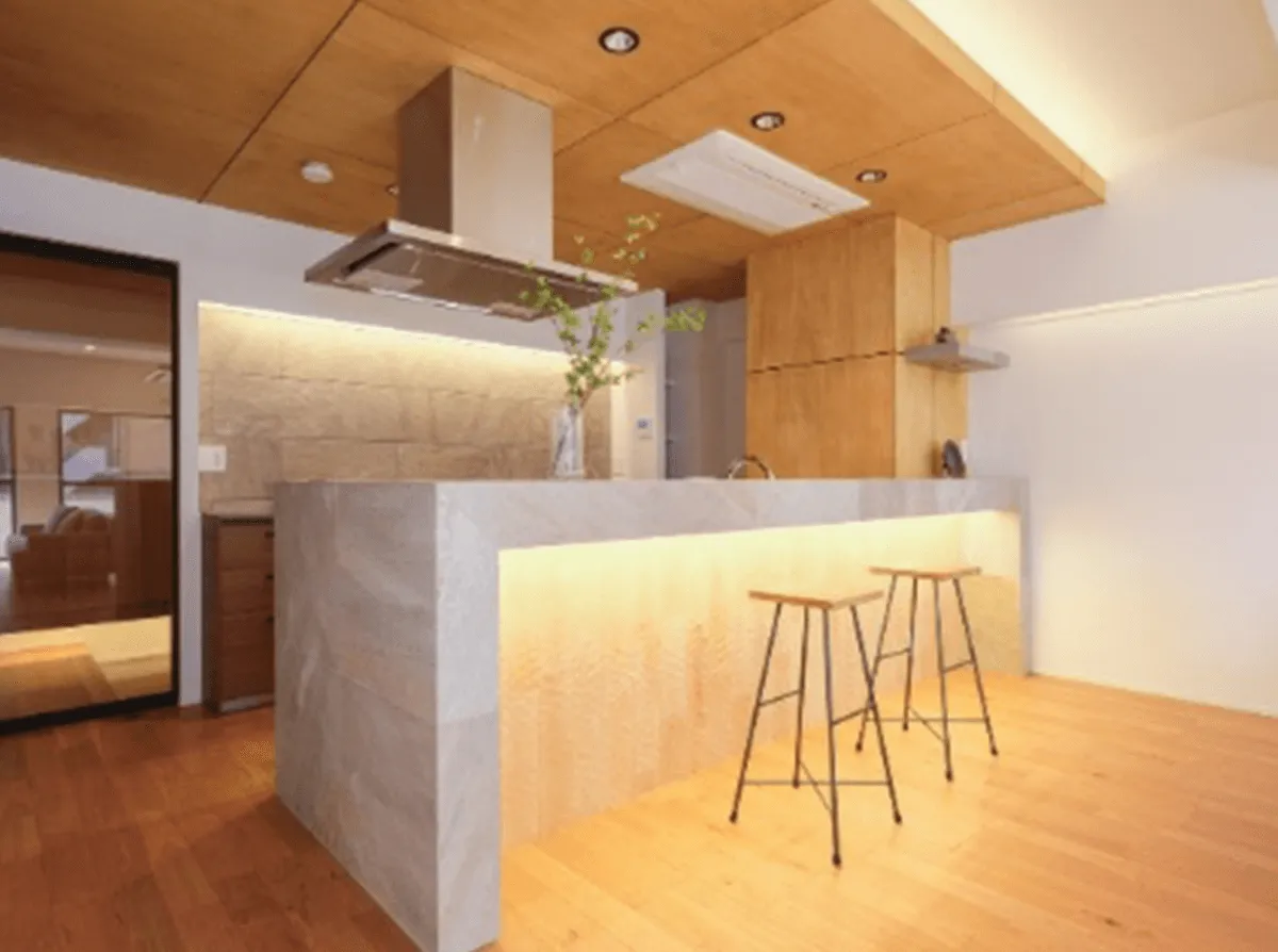 ◇ 東京都中央区のプラスマイリノ事例 3LDK 103.28㎡グローバルベイスのInstagramアカウントを運用するSNS企画室と「マイリノ」設計チームが共同開発しました。不動産やリノベーション会社にとらわれず様々なジャンルのSNS分析を行い、SNS上で注目されている「木」の内装トレンドを取り入れました。落ち着く木のぬくもりを間接照明でさらに高める設計や、木と相性の良い素材選定をおこなっています。
