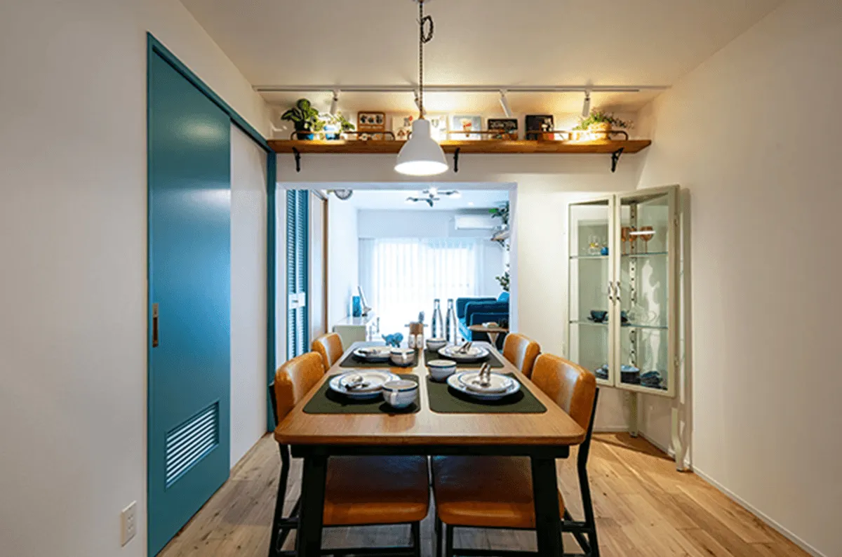 <⾷事の場であると同時に、⾃分らしさを表現できる空間に仕上げたダイニング>