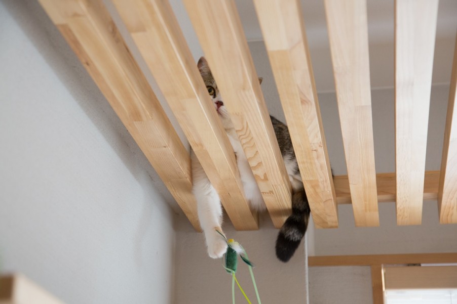 「入居して、ディオが部屋をぐるぐる走り回っている猫の姿をみて、すごい嬉しかったんですよ。上に駆け登っていく姿はみたことがあったのですが、純粋に走るっている姿は初体験で。空間がないとできないことだったんだなと思いました。ちょっと間抜けに聞こえるかもしれませんが、一緒に追いかけっこしたりもしますよ(笑)。日々を生活する空間で、わたしもディオも我慢なしに時間を過ごせることは、とても大切なんだなと改めて思います」