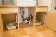 オリジナル洗面台「マイリノ洗面台」は、猫用トイレを収納したまま使用でき、見た目もすっきり美しく掃除も簡単です。洗面台の下部分に、外に空気を追い出す換気システムを設けています。すぐ、においを吸い出すので、普段からトイレのにおいが気になりません。 - 3愛猫と追いかけっこする喜びこうして念願の物件に住みはじめたNさん。ディオちゃんとの毎日はどんなふうに変わったのでしょう。