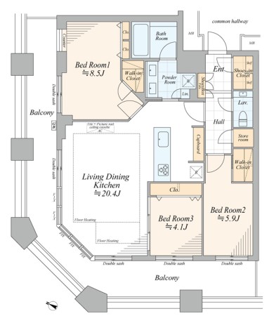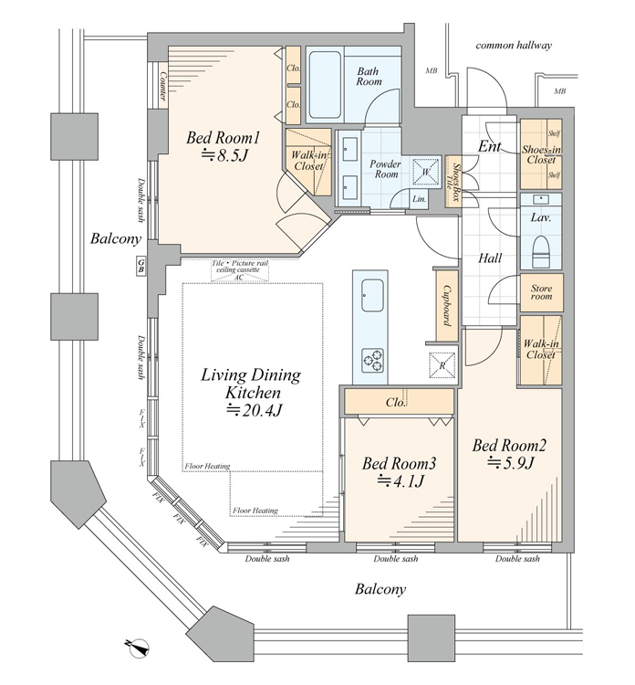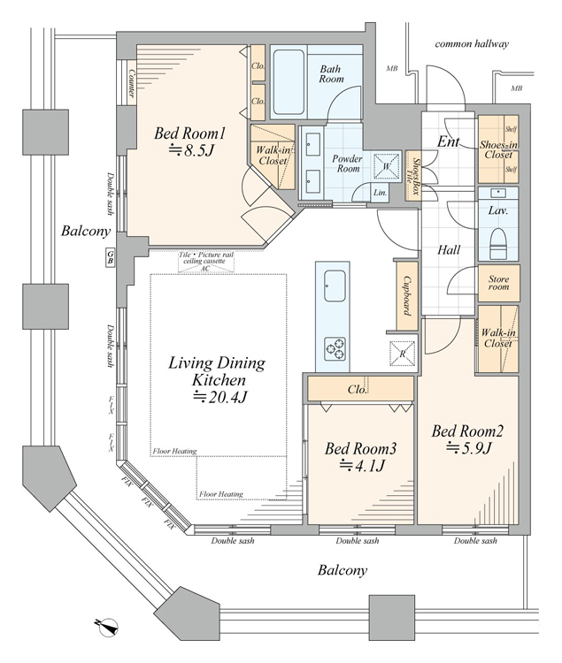 ゆりかもめ『芝浦ふ頭』駅徒歩11分 - 間取り : 3LDK+SIC・2WIC