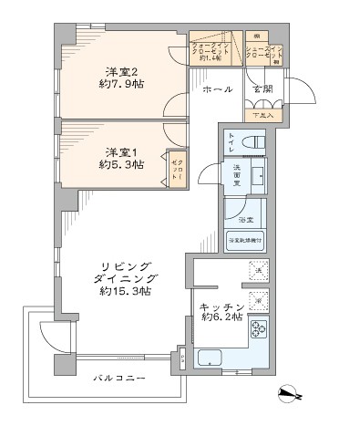 JR総武線『千駄ヶ谷』駅徒歩12分 - 間取り : 2LDK+WIC・SIC