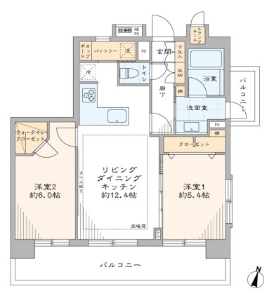 東京メトロ銀座線・東京メトロ半蔵門線・東京メトロ千代田線『表参道』駅徒歩15分 - 間取り : 2LDK+WIC・TR