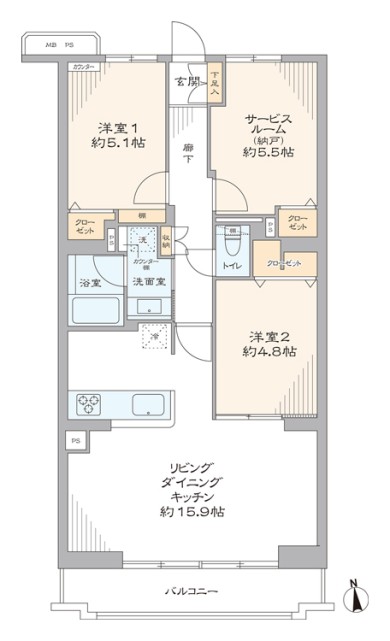 - 間取り2LDK+S(納戸)