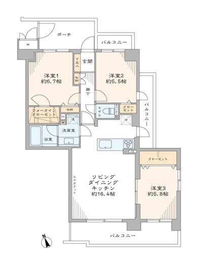 - 間取り3LDK+WIC