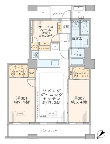 都営大江戸線『勝どき』駅徒歩8分 - 間取り : 2LDK+S・2WIC