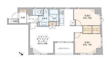 都営新宿線『馬喰横山』駅徒歩7分 - 間取り : 2LDK+2WIC