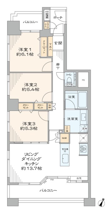JR上野東京ライン『さいたま新都心』駅徒歩12分 - 間取り : 3LDK