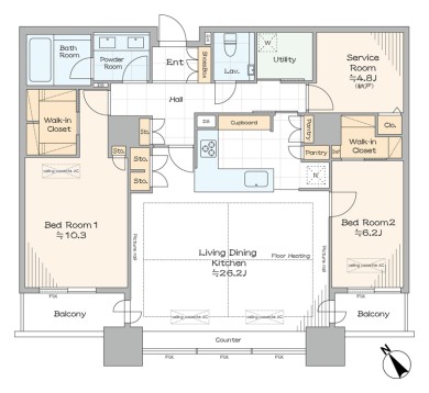 JR山手線・JR京浜東北線『新橋』駅徒歩9分 - 間取り : 2SLDK+2WIC・UT
