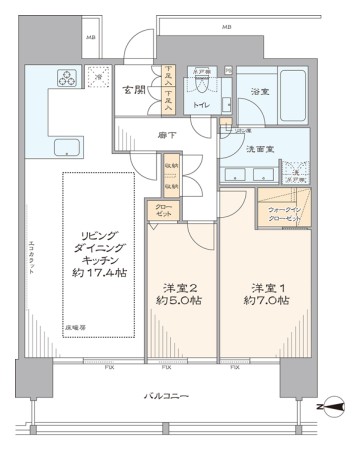 JR線他『横浜』駅徒歩17分 - 間取り : 2LDK+WIC