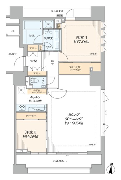 都営新宿線『市ヶ谷』駅徒歩8分 - 間取り : 2LDK+WIC