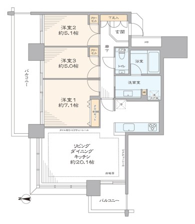 JR線他『横浜』駅徒歩17分 - 間取り : 3LDK