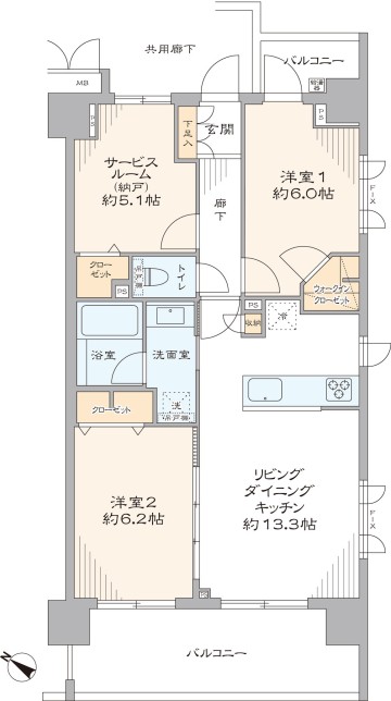 - 専有面積 : 66.12 ㎡
